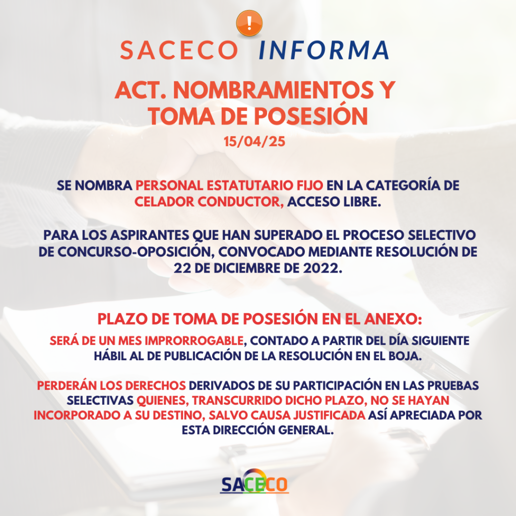 ACTUALIZACIÓN CELADOR CONDUCTOR TOMA POSESIÓN