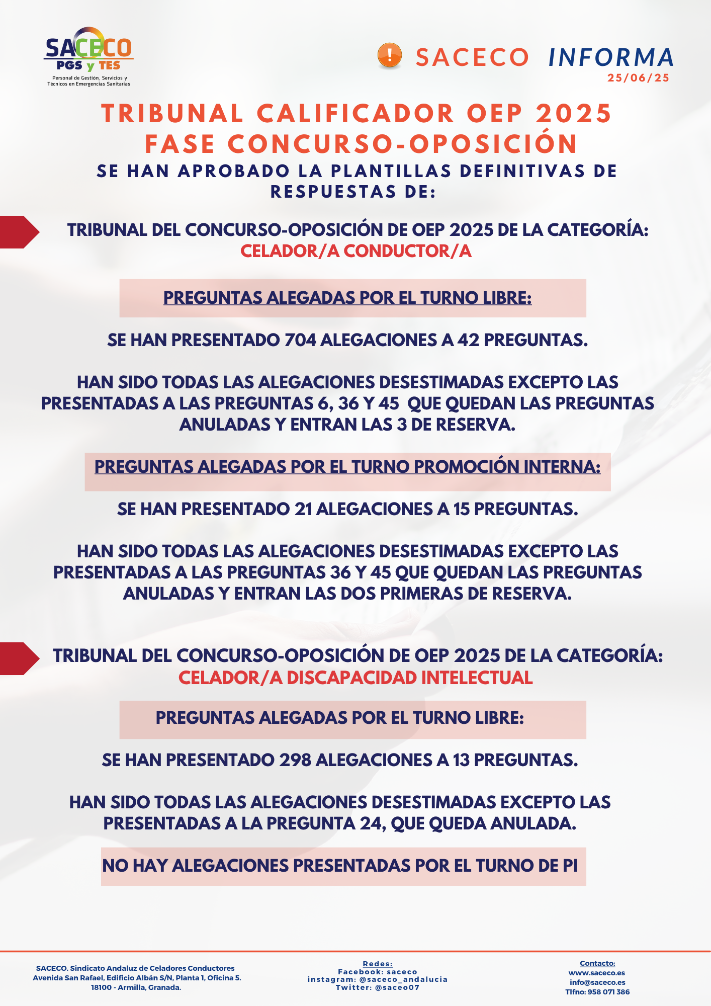 APROBADAS LAS PLANTILLAS DEFINITIVAS OEP 2025 CELADOR DI Y CELADOR CONDUCTOR