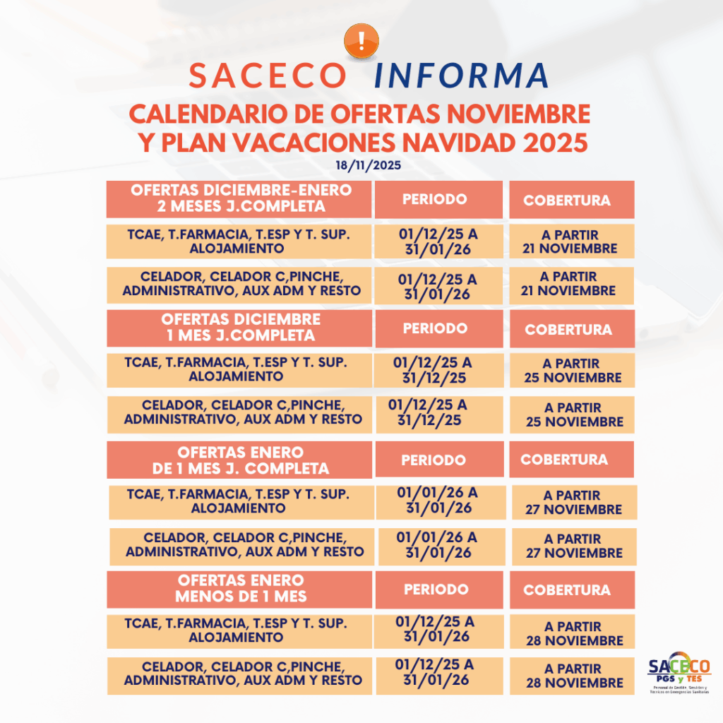 CALENDARIO DE CONTRATACIÓN NOVIEMBRE Y PLAN VACACIONES NAVIDAD 2025