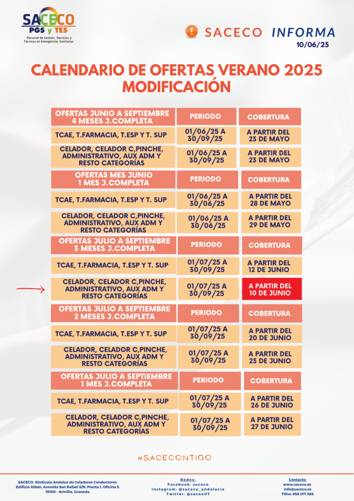 CALENDARIO DE OFERTAS MODIFICACIÓN VERANO 2025