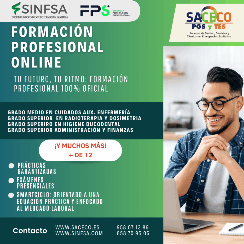 Gracias a nuestro convenio con Sinfsa y Sinergia ahora puedes estudiar tu ciclo de FP online sin pagar matrícula y con un 14% de descuento en el pago completo del ciclo o por año.