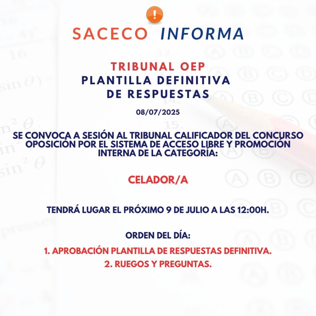 CONVOCADO TRIBUNAL CALIFICADOR CELADOR/A