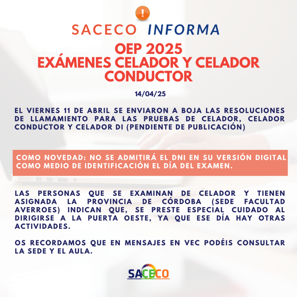 EXÁMENES CELADOR Y CELADOR CONDUCTOR INFORMACIÓN