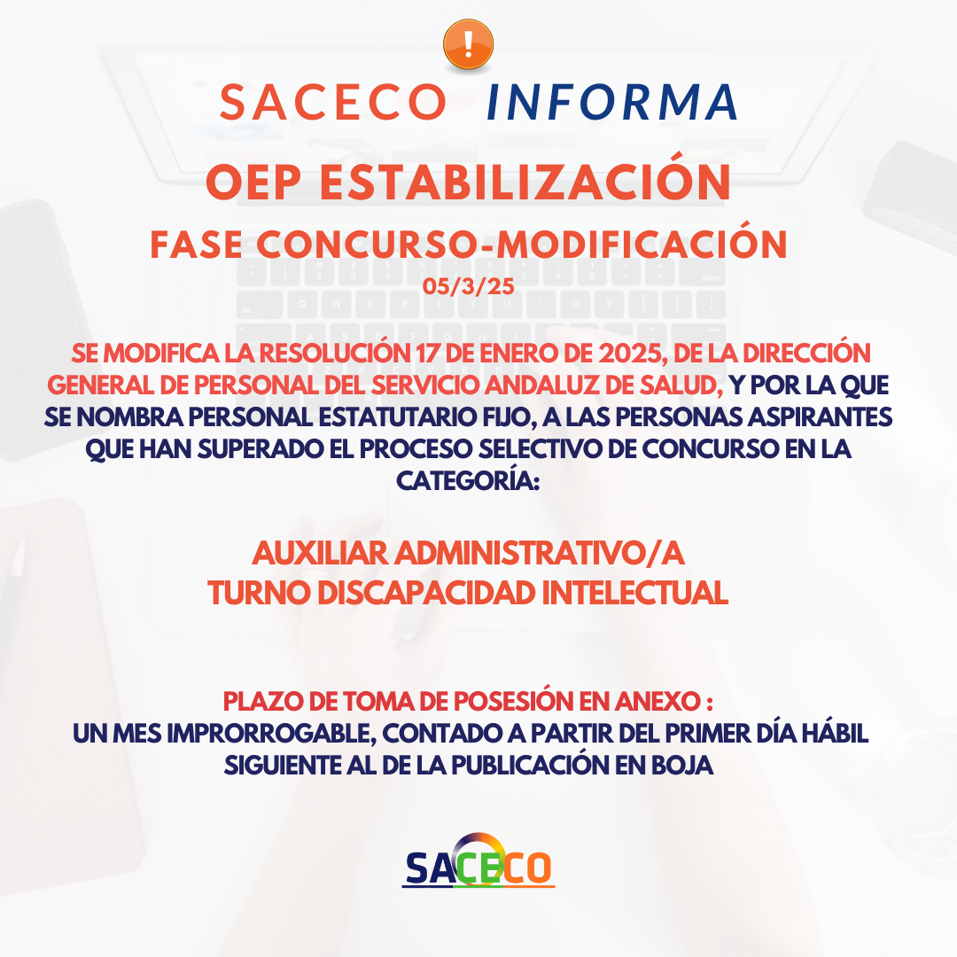 FASE CONCURSO AUXILIAR ADMINISTRATIVO DI – MODIFICACIÓN