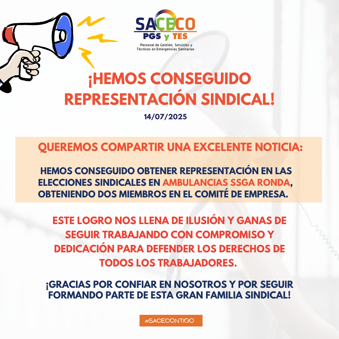 ¡HEMOS CONSEGUIDO REPRESENTACIÓN SINDICAL!