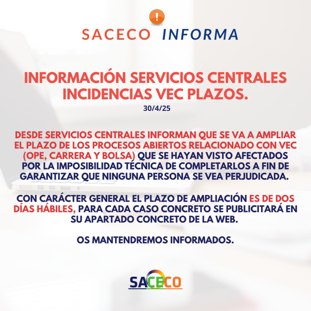 INCIDENCIAS AMPLIACIÓN PLAZOS VEC
