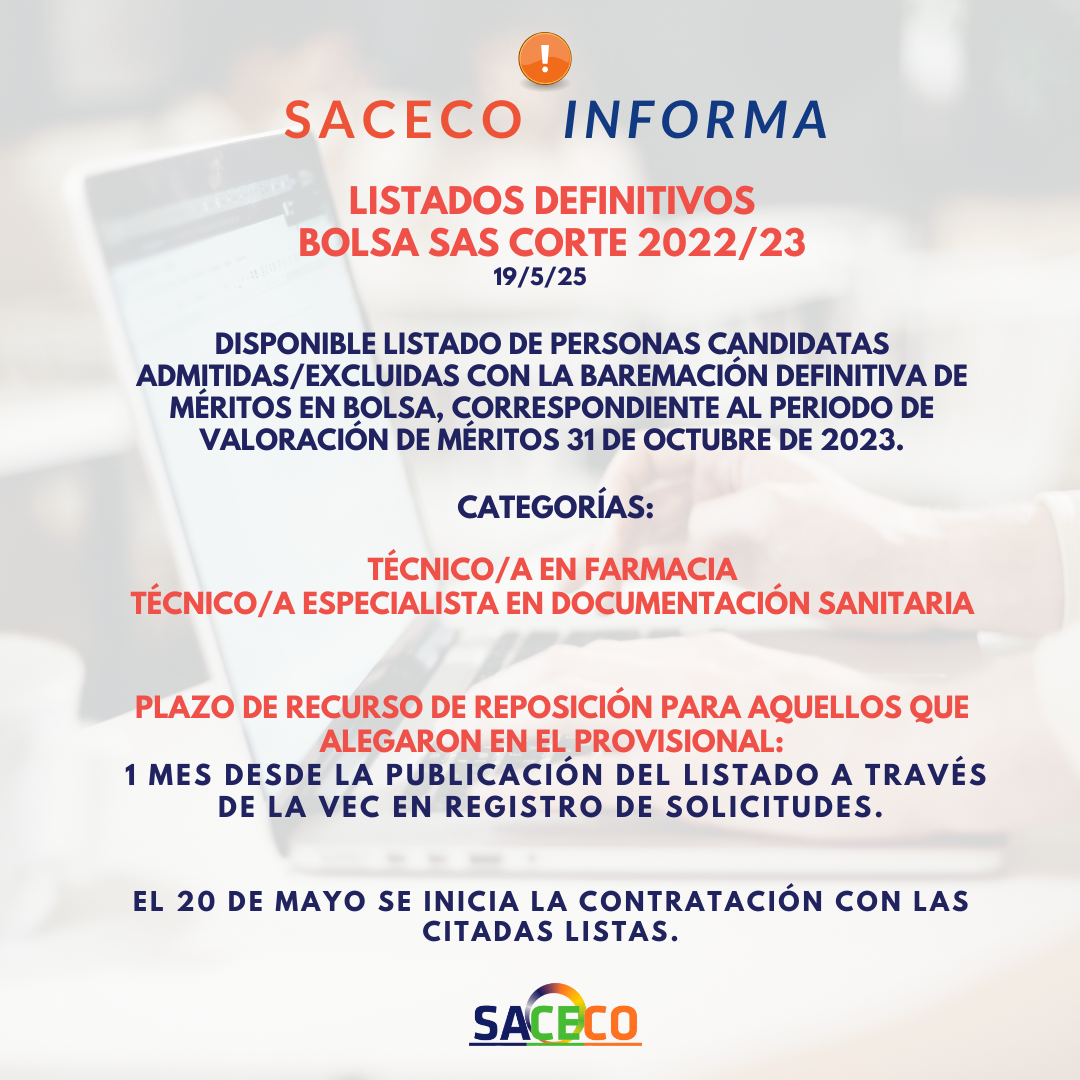 👉🏻Listado Definitivo de personas candidatas admitidas/excluidas, con baremación definitiva de méritos (Periodo de valoración 31 Octubre de 2023) Técnico/a en Farmacia