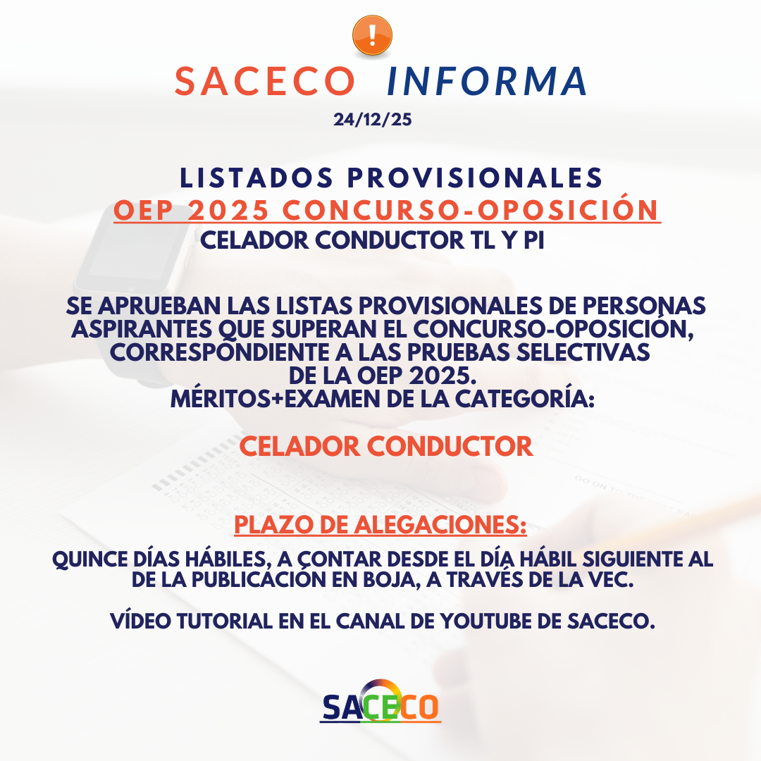 Enlace a Listados provisionales Celador Conductor OEP 2025 Concurso-oposición