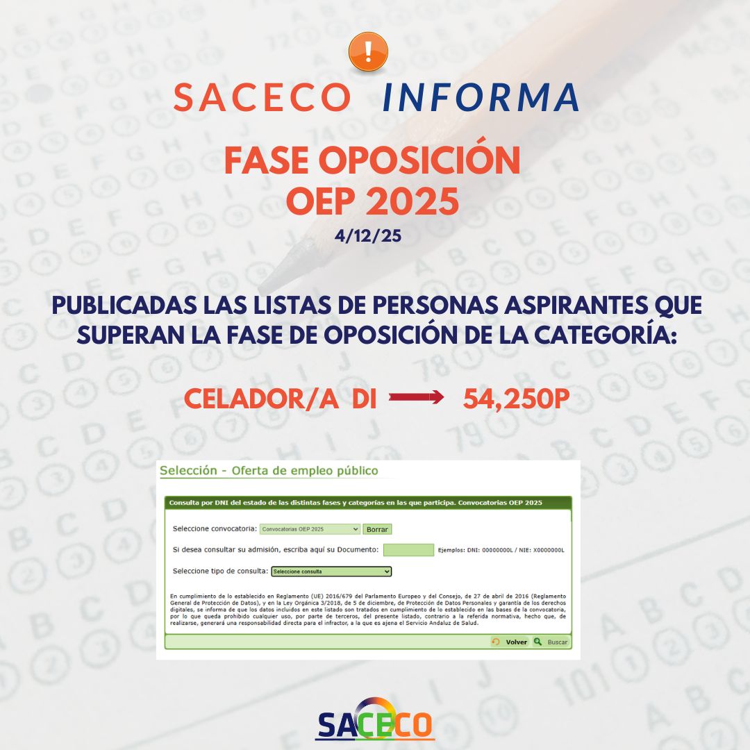 👉🏻BOJA Celador DI👉🏻Listado de personas aspirantes que superan la fase de oposición CELADOR/A – ACCESO DI. Convocatorias OEP 2025🔸Consulta por DNI