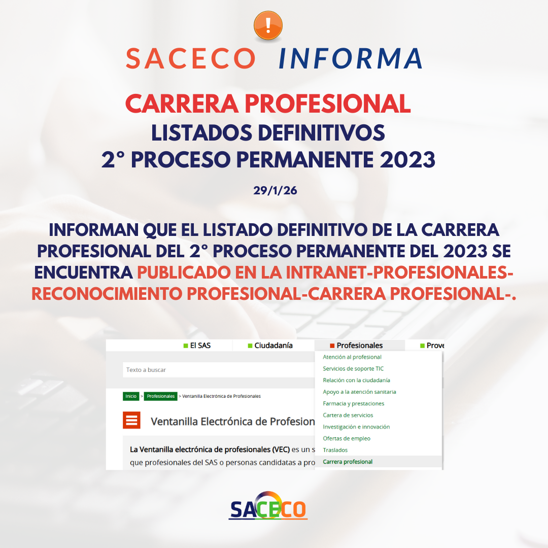 LISTAS DEFINITIVAS EN LA INTRANET DE PROFESIONALES CARRERA PROFESIONAL 2º PROCESO PERMANENTE 23