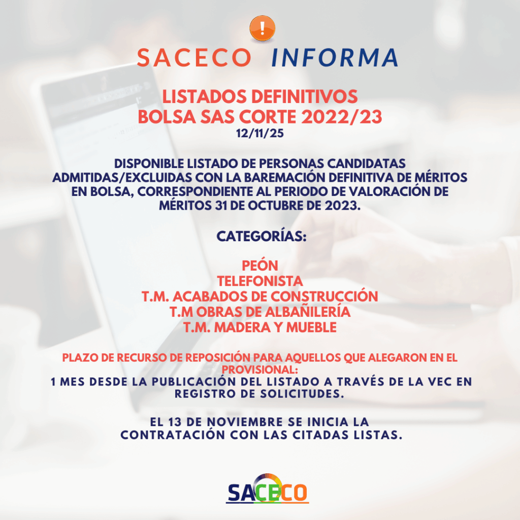 ℹ️Disponible listado de personas candidatas admitidas/excluidas con el baremo definitivo de méritos de Bolsa: