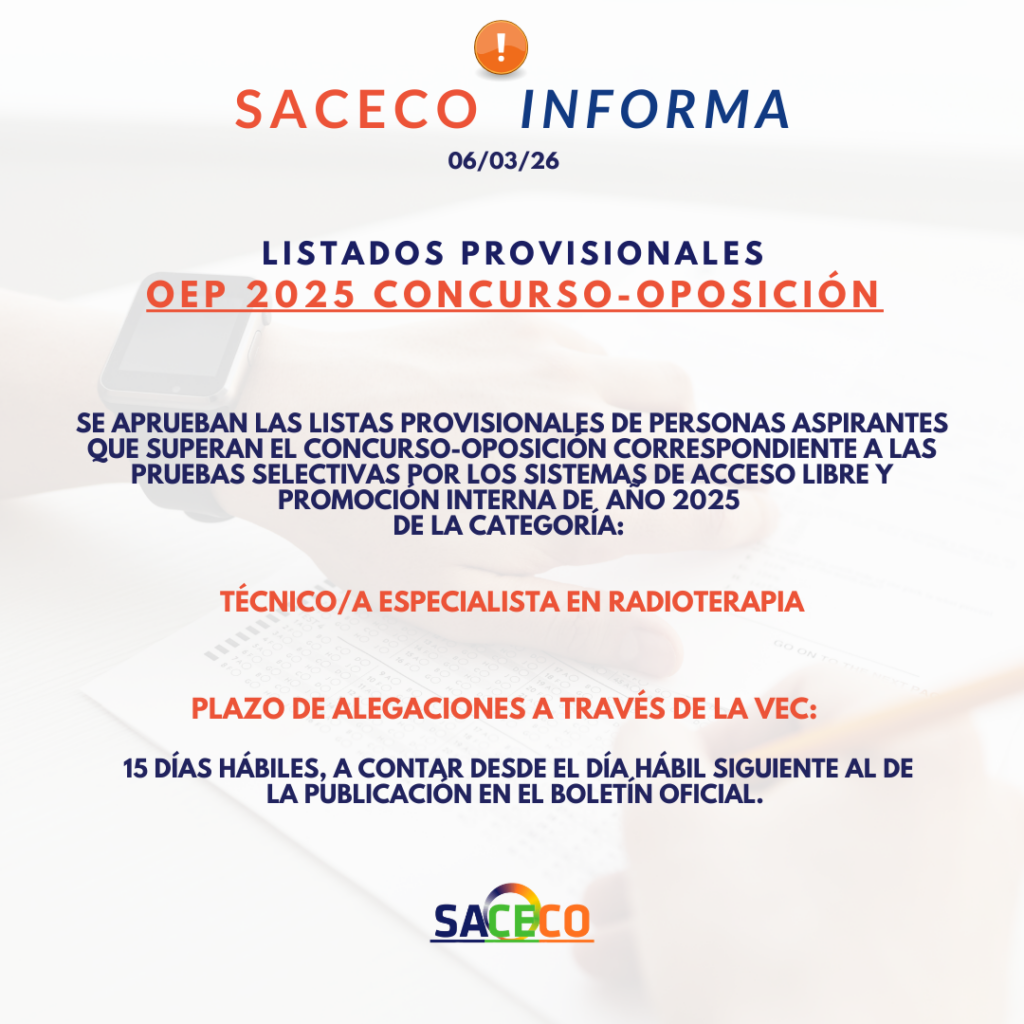 ➡️Listado Provisional para el concurso oposición: TECNICO/A ESPECIALISTA RADIOTERAPIA: https://ws027.sspa.juntadeandalucia.es/profesionales/oep_listados/listado_sup.asp?idproceso=71424&t=a&convocatoria=2025