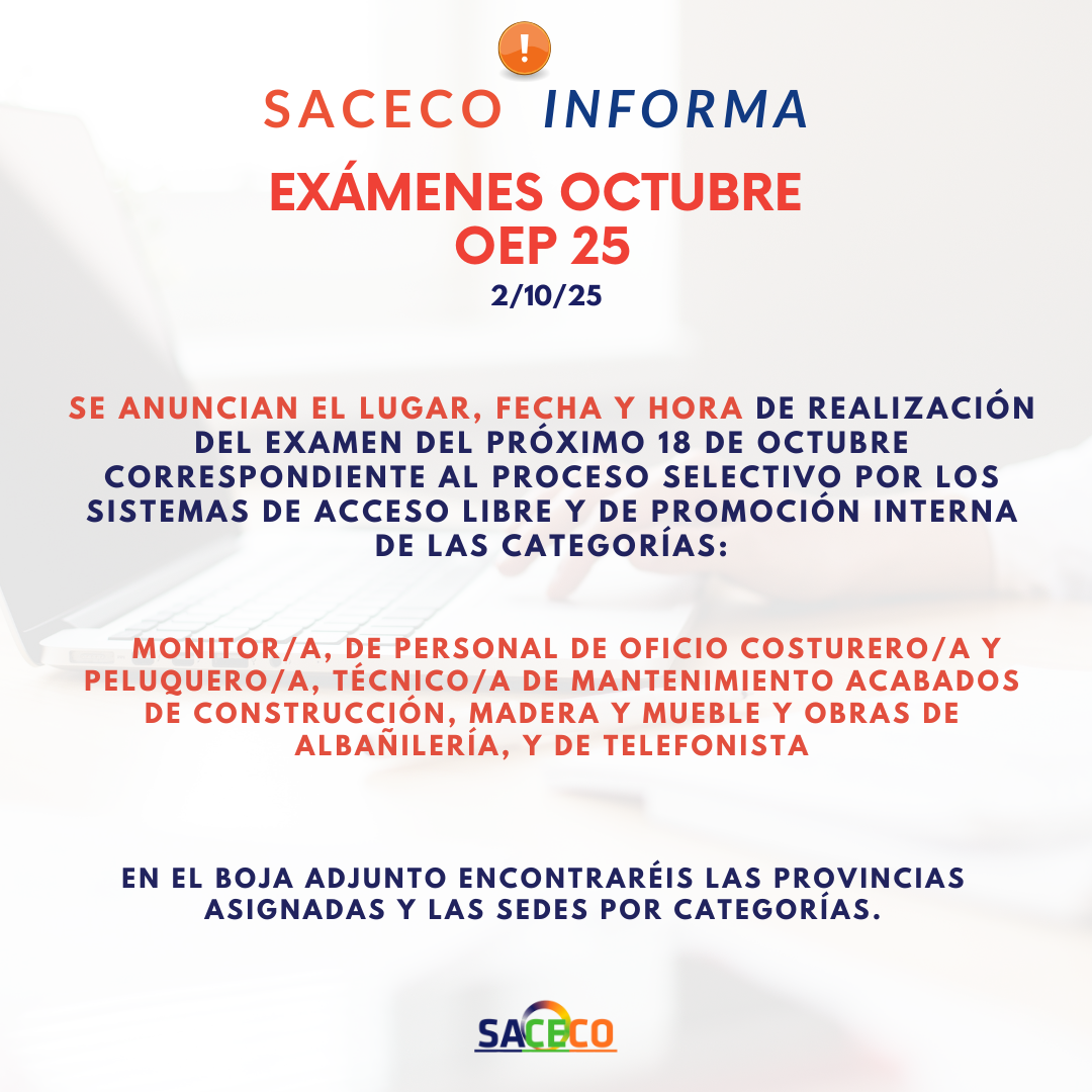LUGAR, FECHA Y HORA MONITOR, COSTURERO, PELUQUERO, Y T.MANTENIMIENTO OCTUBRE 2025