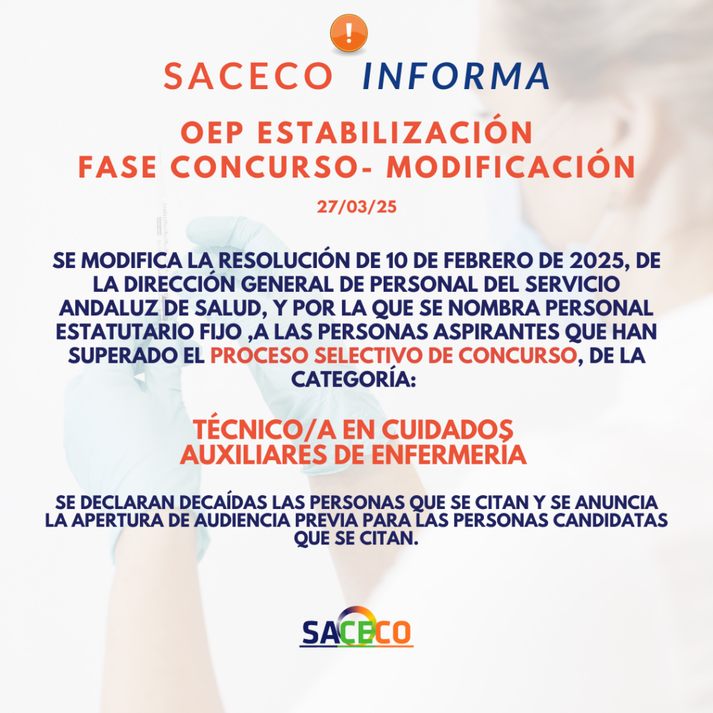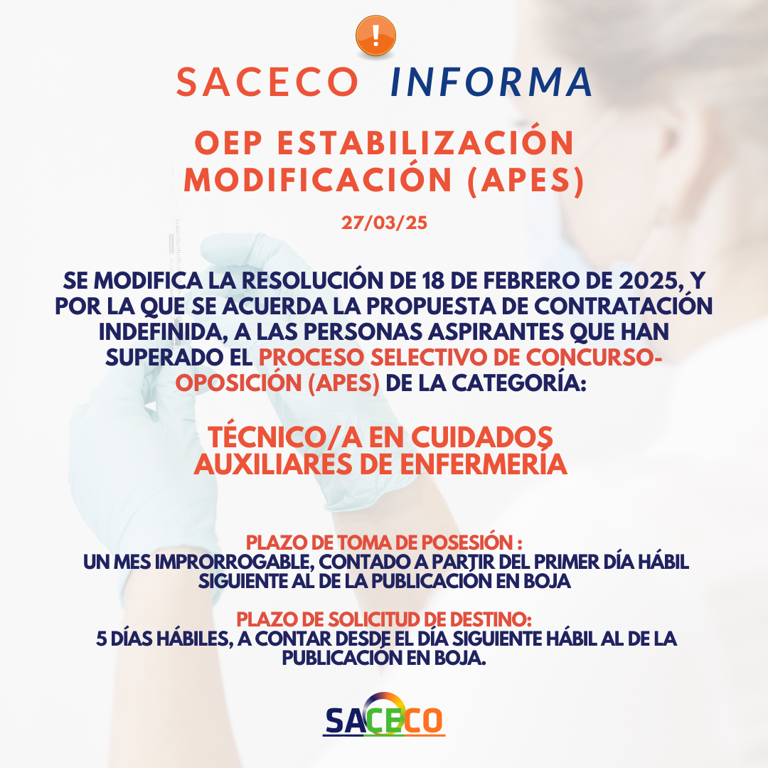 MODIFICACIÓN CONCURSO SAS TCAE-Y TCAE APES CONCURSO OPOSICIÓN