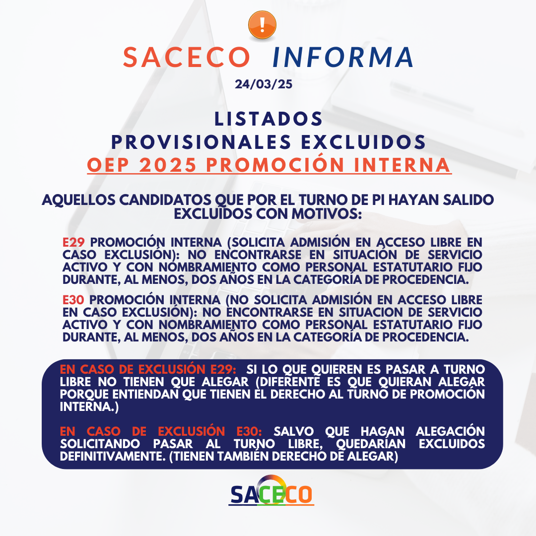 MOTIVOS EXCLUSIÓN E29 Y 230 PROMOCIÓN INTERNA