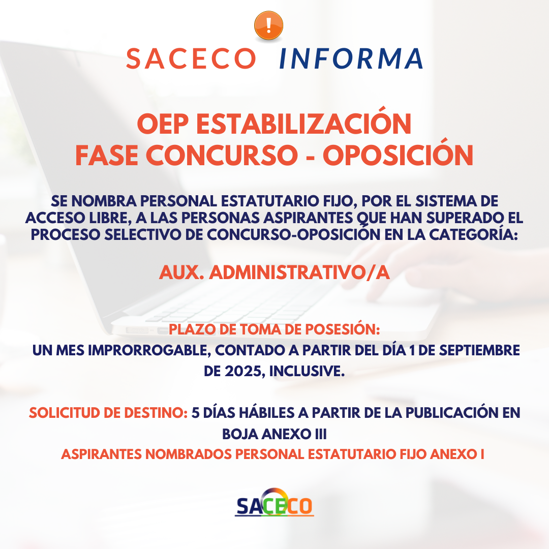 👉🏻Nombramientos y adjudicación de plazas de AUXILIAR ADMINISTRATIVO/A – Turno libre. OEP Extraordinaria. Decreto Ley 12/2022. Centros SAS. Concurso-Oposición🔸Enlace a BOJAℹ️Paso a paso para tomar posesión y documentos necesarios👉🏻Enlace a Vídeo tutorial solicitar destino (plaza)