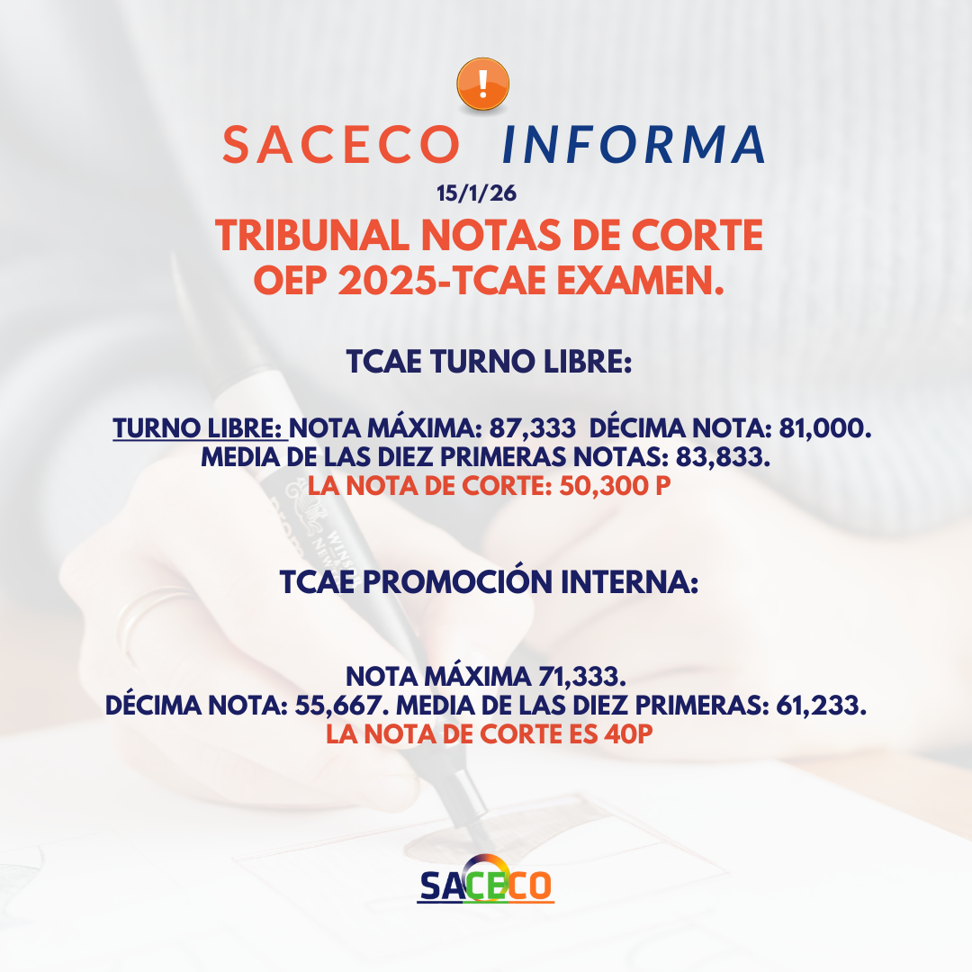 NOTA DE CORTE TCAE FASE OPOSICIÓN