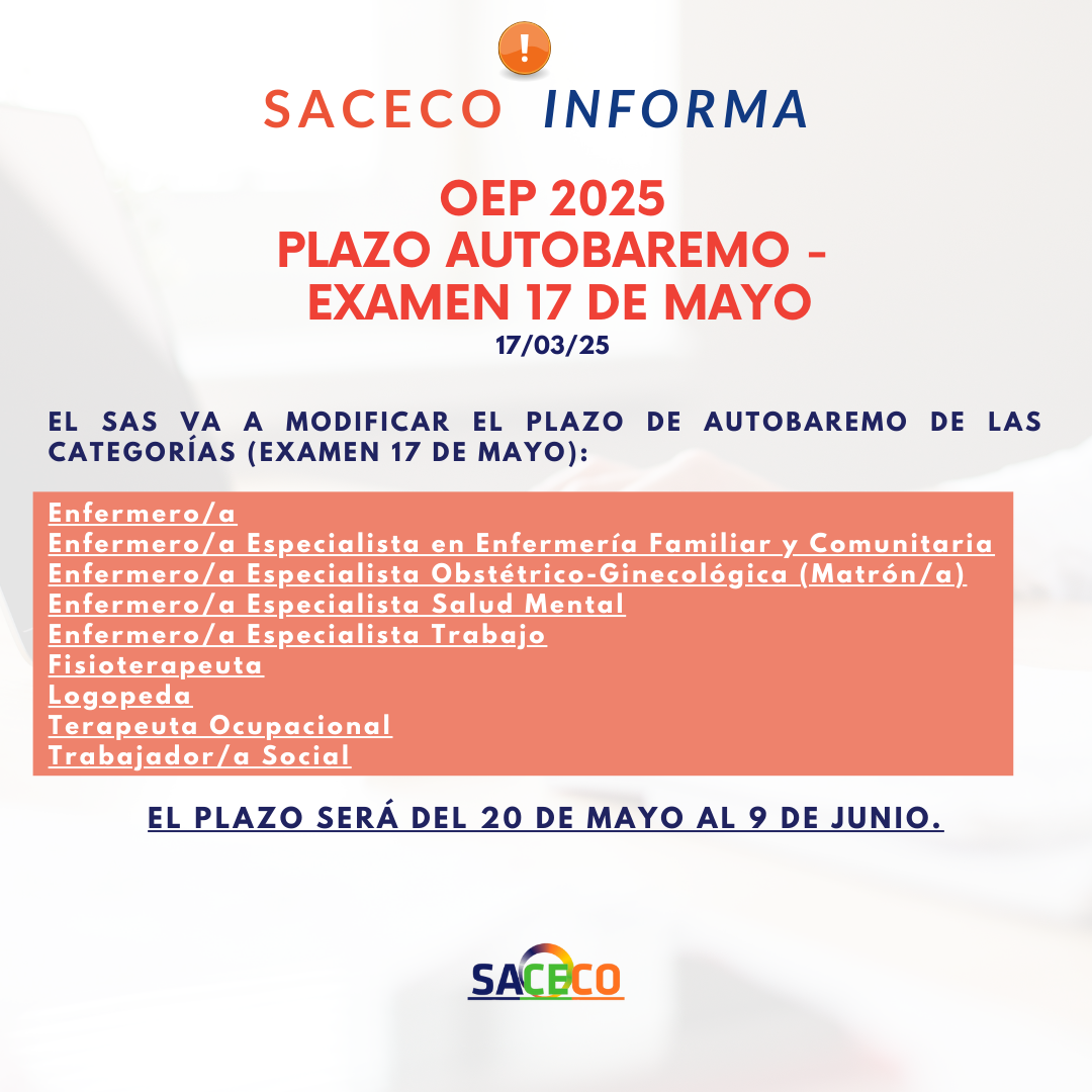 NUEVO PLAZO DE AUTOBAREMO EXAMEN 17 DE MAYO
