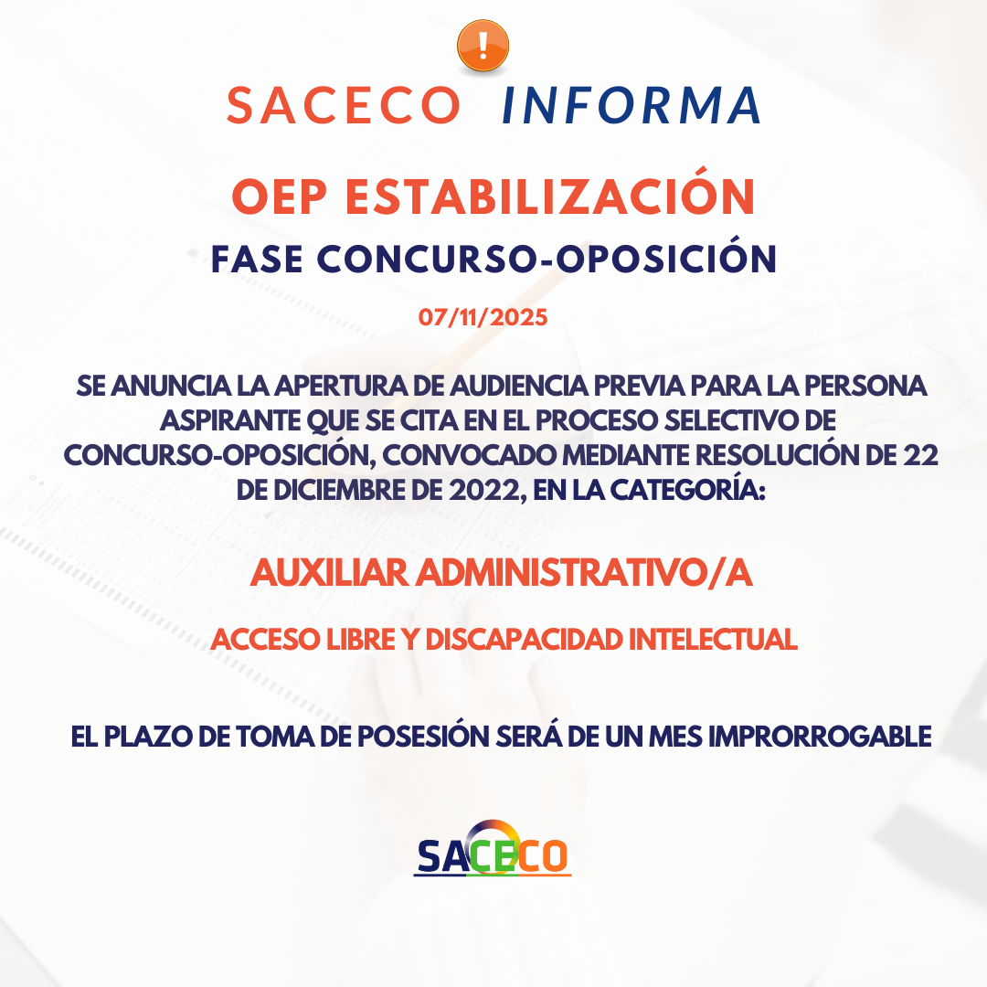 OEP ESTABILIZACIÓN – AUX. ADMINISTRATIVO – TURNO LIBRE Y DISC. INTELECTUAL