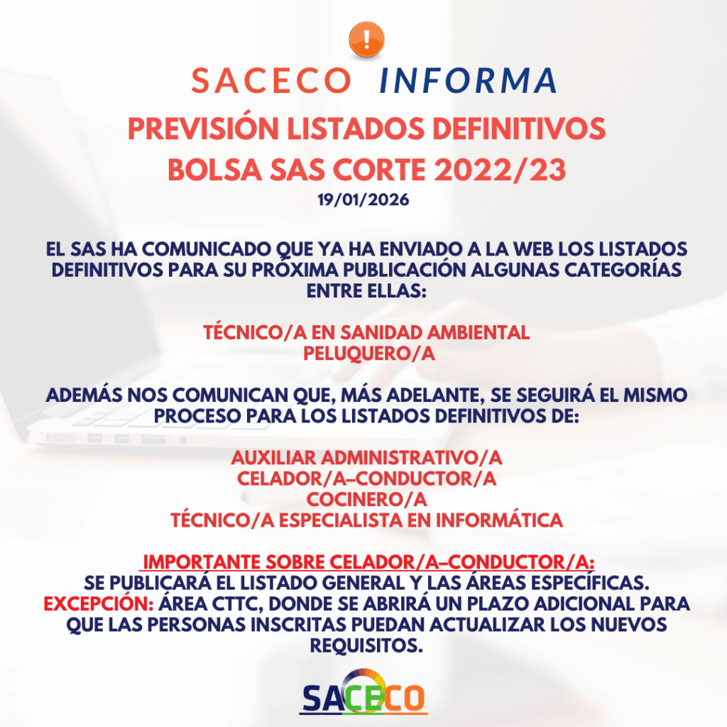 PREVISIÓN LISTADOS DEFINITIVOS BOLSAS CELADOR CONDUCTOR, AUX. ADM Y MÁS CATEGORÍAS