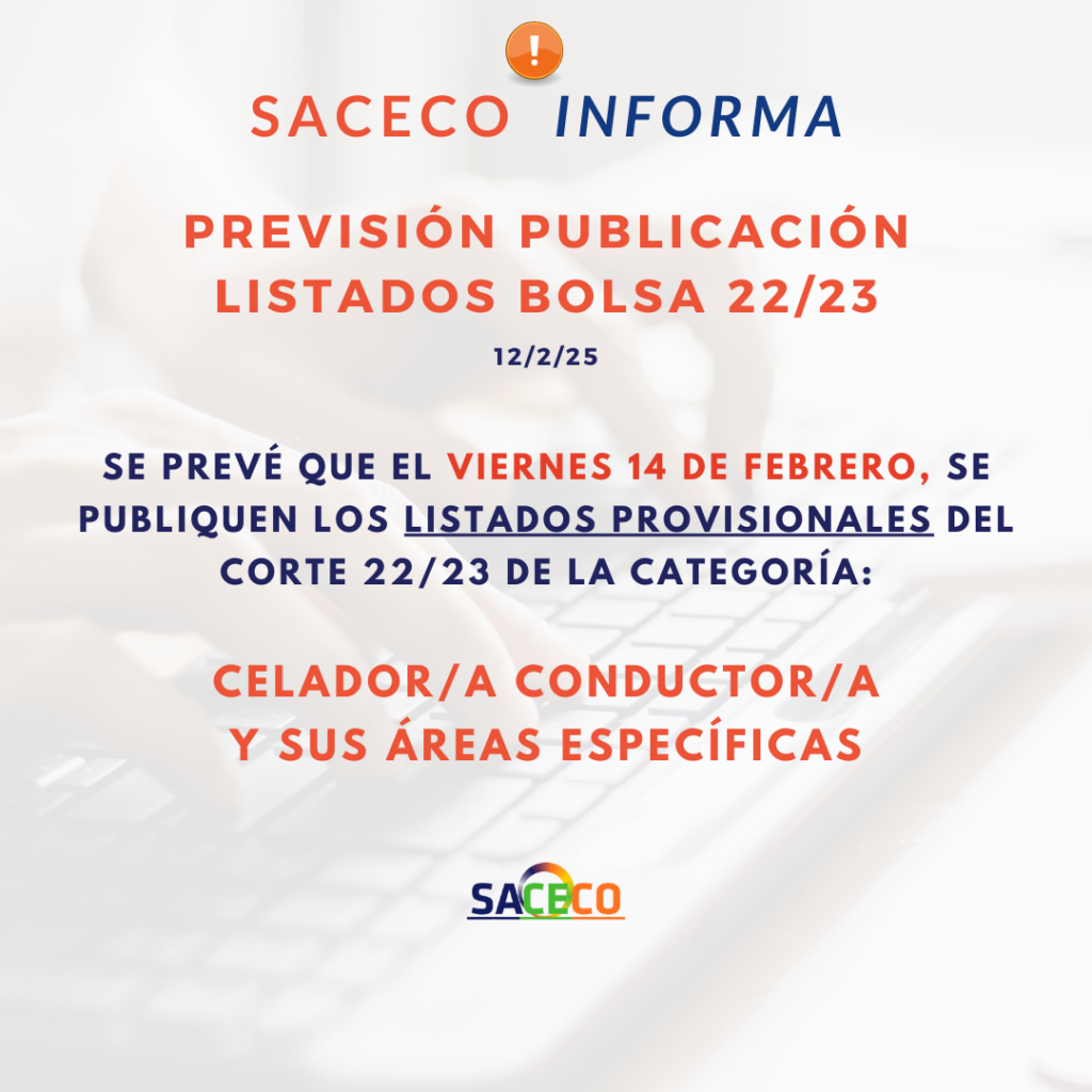 PREVISIONES LISTAS PROVISIONALES CELADOR CONDUCTOR BOLSA 22/23