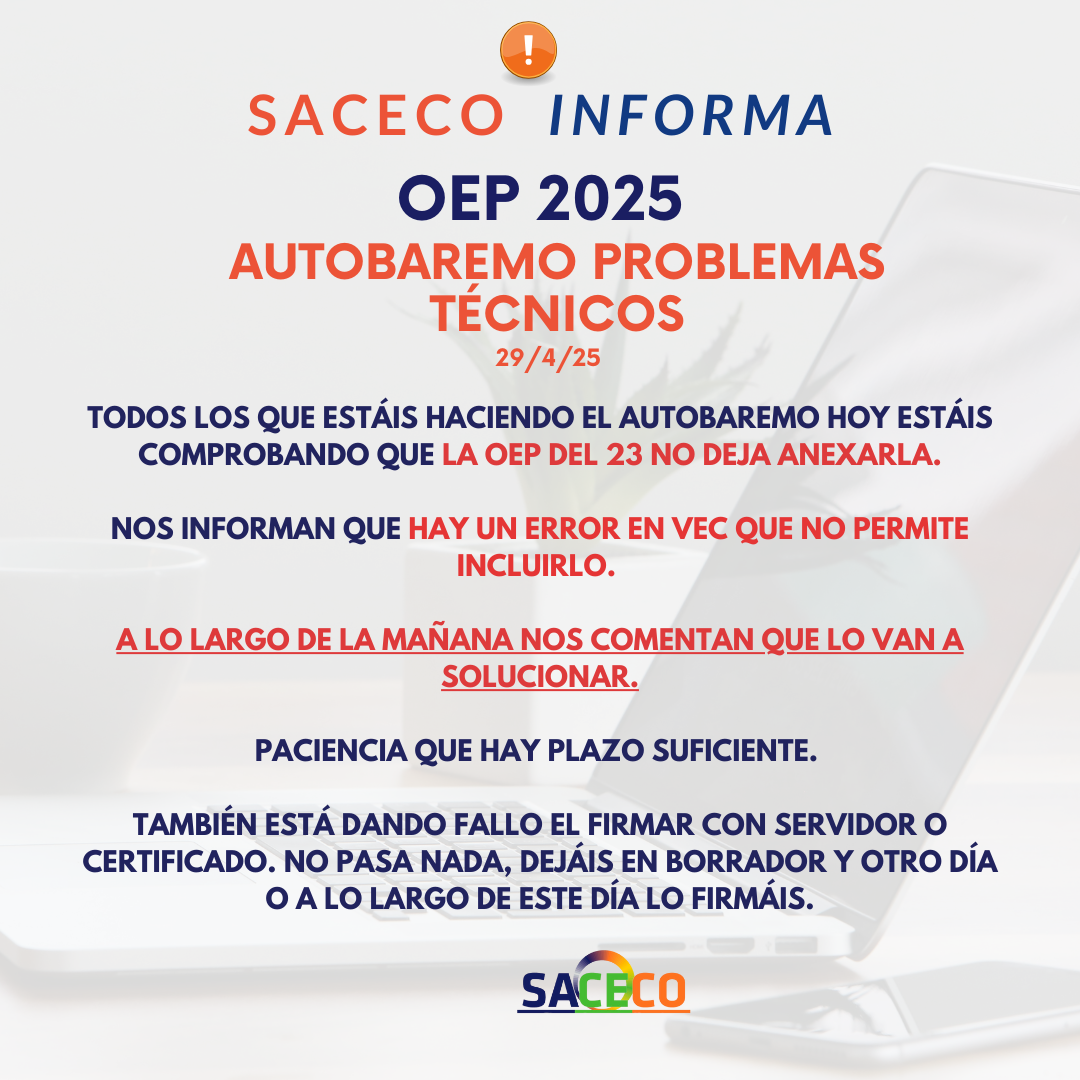 PROBLEMAS TÉCNICOS AUTOBAREMO OEP 2023