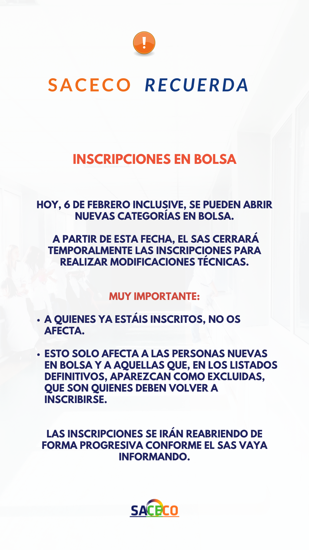 SACECO RECUERDA-INSCRIPCIONES HASTA EL 6 DE FEBRERO POR MODIFICACIONES TÉCNICAS EN VEC