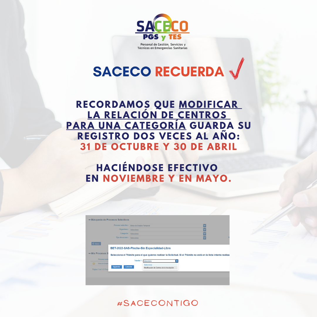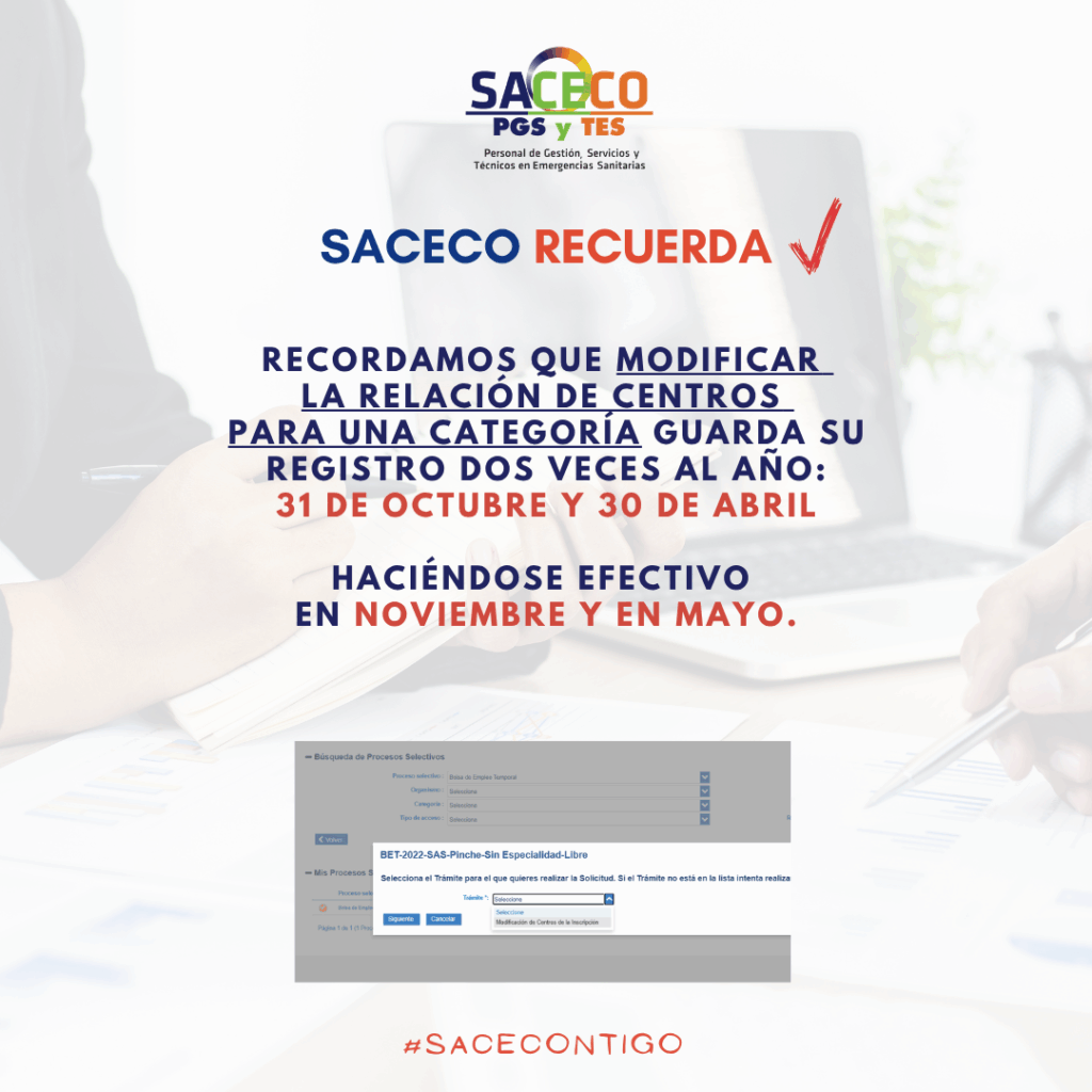 SACECO RECUERDA: MODIFICAR CENTROS 2 VECES AL AÑO