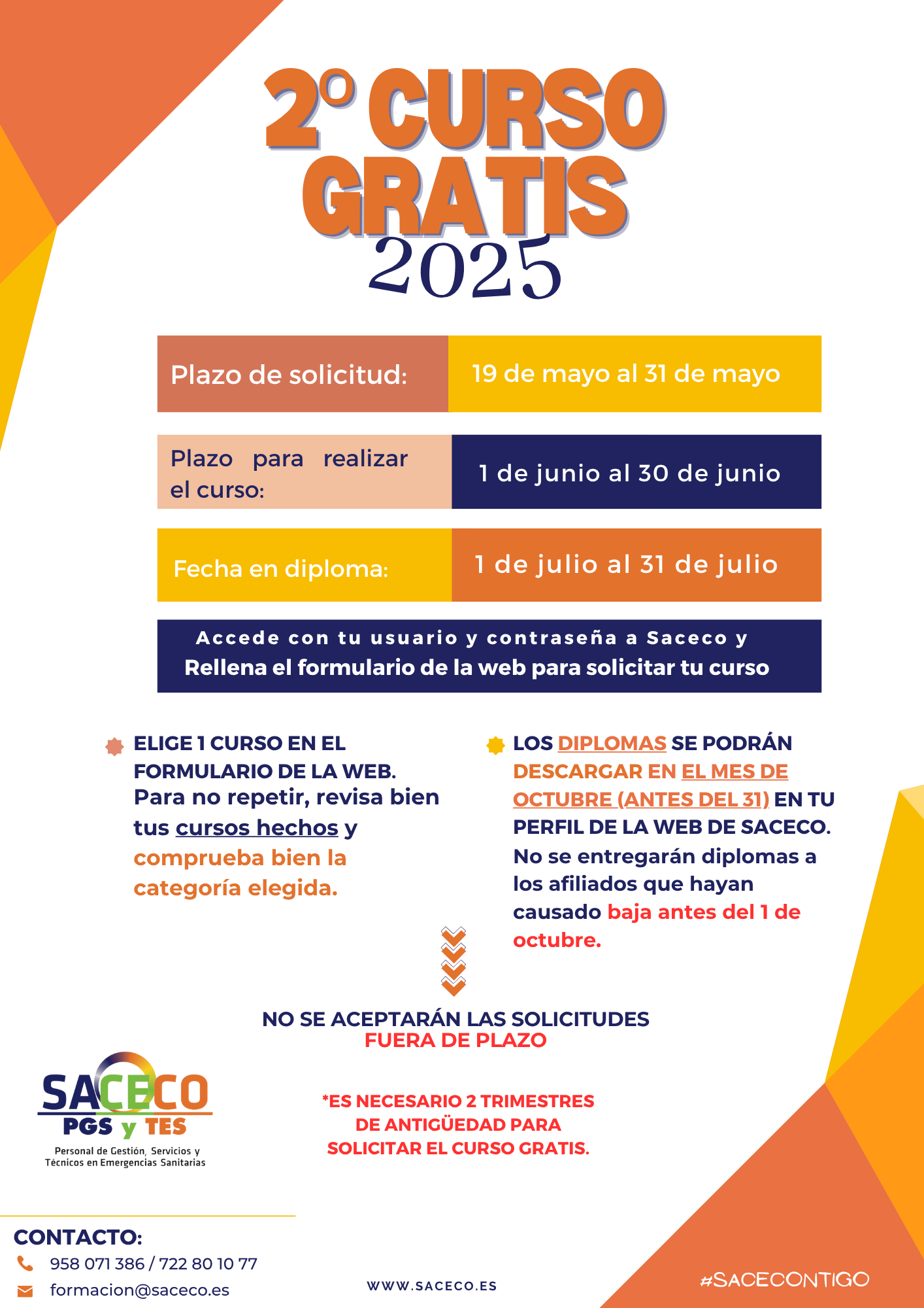 ℹ️ ACCESO AL FORMULARIO DE PEDIDO: https://saceco.es/formulario-curso-gratuito/