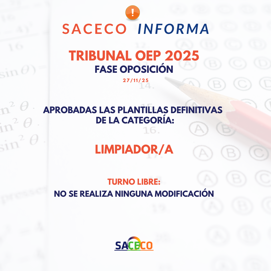 TRIBUNAL OEP APROBADAS PLANTILLAS DEFINITIVAS LIMPIADOR/A